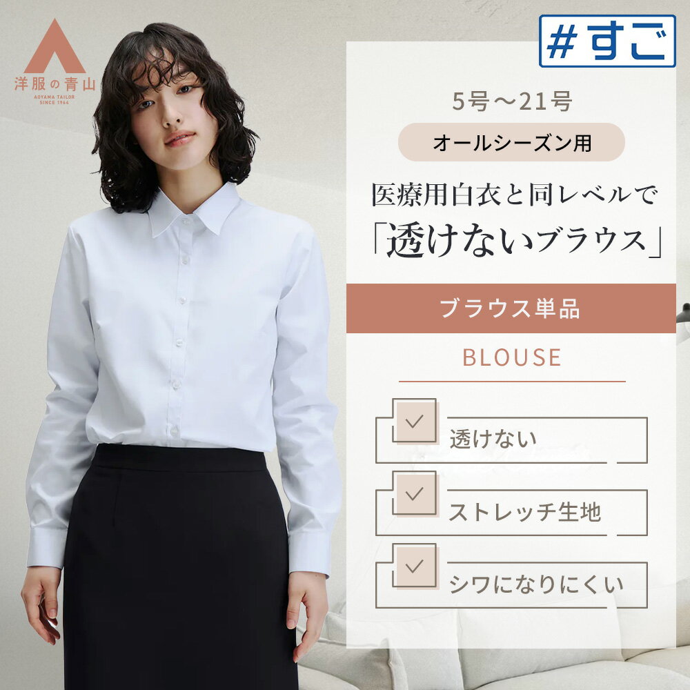 【洋服の青山】透けない ブラウス 長袖 レディース オールシーズン ホワイト 白 レギュラーカラー 透け防止 透けにくい シワになりにくい 動きやすい 形態安定
