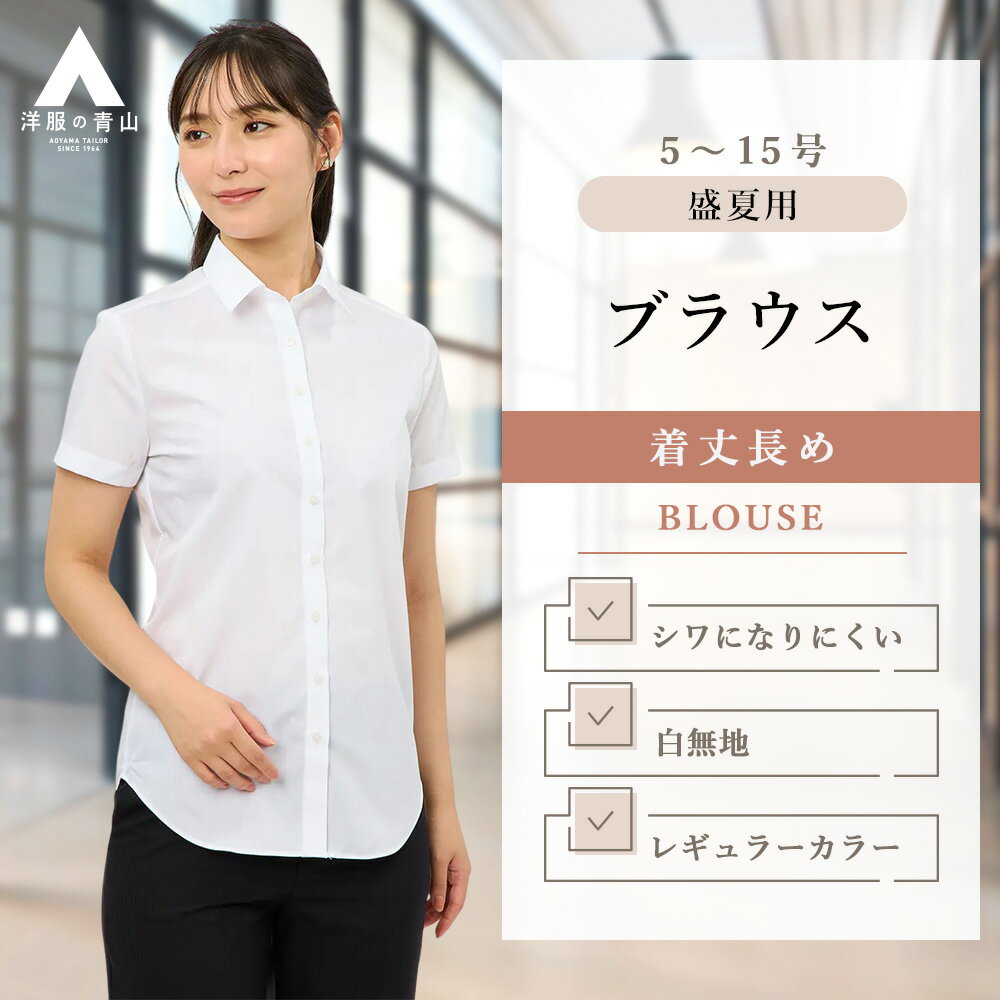 【洋服の青山】シワになりにくい ブラウス 半袖 レディース 盛夏 レギュラーカラー ホワイト 白無地 大きいサイズ 形態安定 ストレッチ 動きやすい UVカット オフィス ビジネス 就活 面接 リクルート 仕事 ワイシャツ Yシャツ カッターシャツ 事務服 制服 トップス 50代 女性