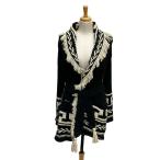 ダブルアールエル RRL シルクコットンハンドニット ネイティブ柄 カーディガン 282500338001 ブラック×アイボリー サイズ:1