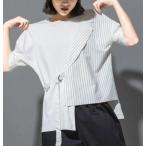 ブラウス 高見え 半袖 アシンメトリー 異素材ミックス 綿混 大人カジュアル フリル袖Tシャツ