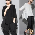 シャツ レディース Tシャツ トップス 半袖 5分袖 モード系 個性的 アシンメトリー 大人 きれいめ ゆったり ルーズ おしゃれ 黒 春夏