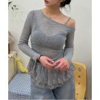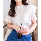 tシャツ アシンメトリーフリル異素材コンビTシャツ レディース