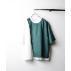 tシャツ 「Eclat one」アシンメトリー 切り替えデザイン 異素材ドッキング カットソー レディース