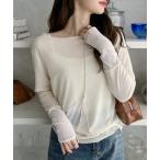 【20%OFF】カットソー 長袖 レディース トップス ロンT 異素材 アシンメトリー アシメ 配色 クルーネック リブカットソー プルオーバー ロングスリーブTシャツ 綿100% 異素材MIX レイヤード 秋 冬 春 オシャレウォーカー◇※メール便可※【10】