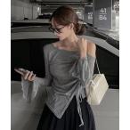 tシャツ リブカットソーストラップアシンメトリートップス レディース