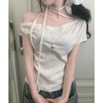 tシャツ アシンメトリー ネックデザイン ドロスト リボン レーストップス レディース