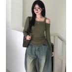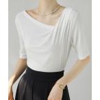 tシャツ ハーフオープンショルダー アシンメトリートップス レディース