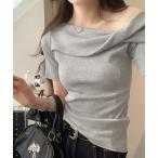tシャツ ワンショルダー アシンメトリー 半袖 リブ Tシャツ レディース