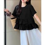 tシャツ アシンメトリーフリルtシャツ 異素材夏服 レディース