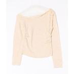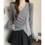 tシャツ シャーリングデザイン アシンメトリー長袖トップス レディース