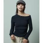 tシャツ 「新色追加」「ブラ紐隠し」スムースリブアシンメトリーオフショルダートップス レディース