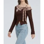 tシャツ チェック襟アシンメトリーオープンショルダーカットソー レディース