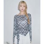 tシャツ ウエストリボン付き アシンメトリー ドレープチェックトップス レディース