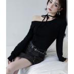 tシャツ アシンメトリーストラップオフショルダートップス レディース