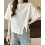 スリット アシンメトリー Tシャツ レディース トップス Tシャツ プルオーバー 半袖 半そで アシメ デザイン 綿 無地 モード カジュアル 大人 春 夏