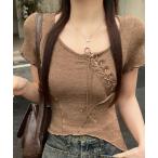 tシャツ フロント編み上げカットオフアシンメトリーTシャツ レディース