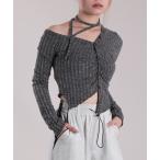 tシャツ 2WAY ワンショルダー アシンメトリー 半袖 リブ カットソー レディース