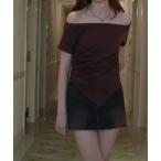tシャツ アシンメトリー オフショルダー サイド シャーリング カットソー レディース