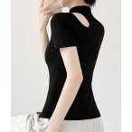 tシャツ ワンショルダー アシンメトリー 半袖 リブ Tシャツ レディース