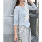 tシャツ サイド シャーリング アシンメトリー デザイン トップス レディース