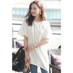 tシャツ アシンメトリーサイドリボンスムースロンT レディース