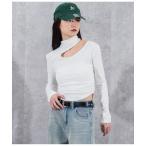 tシャツ 5color/カットアウトアシンメトリーコンパクトトップ レディース