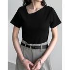 tシャツ ワンショルダー アシンメトリー 半袖 リブ Tシャツ レディース