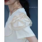 SからM対応 縁取りビジューのアシンメトリーフリルTシャツトップス
