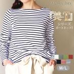 Tシャツ ボートネック レディース 長袖 無地 ボーダー カットソー コットン 綿 スーツ インナー 白 シンプル 大人 トップス 制服 オリジナル M L A20