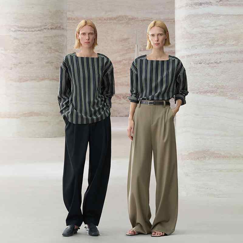 シャツ レディース 春秋 トップス ブラウス Tシャツ 長袖 スクエアネック プルオーバー ストライプ グリーン ブラウン