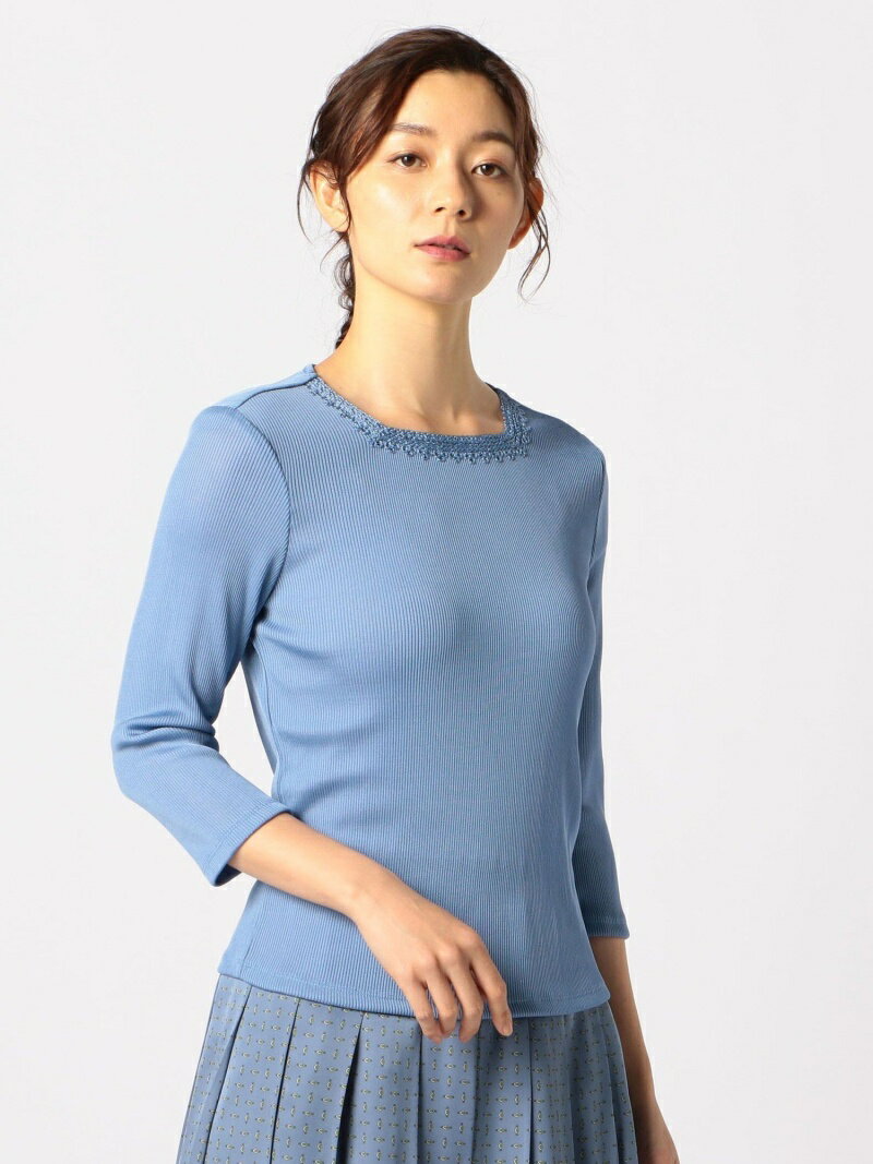 トリアセリブスクエアネックカットソー SCAPA スキャパ トップス カットソー・Tシャツ グレー グリーン ブラック ブルー【送料無料】[Rakuten Fashion]