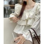 tシャツ フリルティアードスクエアネックバックリボンブラウス レディース