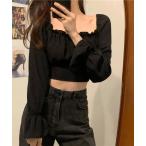 tシャツ カラースクエアネックトップス/color square neck top 長袖 薄手 クロップド丈 レイヤード 抜け感コーデ カジュアル レ