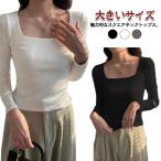 tシャツ スクエアネックニット長袖Tシャツ レディース