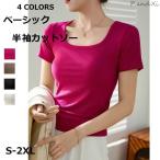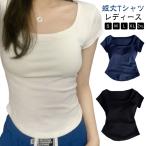 半袖Tシャツ 無地 リブ ニットレディーススクエアネック 夏ボートネックトップスインナー シンプル