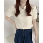 tシャツ 「26春夏新作」スカラップカットパンチングパフスリーブ半袖サマーニット レディース