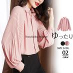 ブラウス レディース シャツ 長袖 開襟 プリーツ パフスリーブ フリル オフィスカジュアル ビジネス 着痩せ 通勤 フェミニン