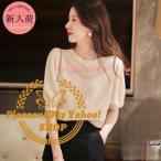 ブラウス 半袖 レディース Tシャツ パフスリーブ ボリューム袖 クルーネック 夏 プルオーバー トップス 可愛い ゆったり 20代 30代 大人 通