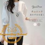 チュニックシャツ レディース 40代 春夏新作 オシャレ 白Tシャツ 五分袖トップス パフスリーブブラウス 体型カバー 大人 通勤 ゆったり カジュアル