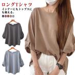 パフスリーブチュニックTシャツ tシャツ レディース 長袖 ロングTシャツ カットソー クルーネック クルーネック 丸首 Tシャツ 春コーデ Tシャツ