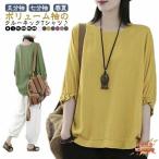 トップス レディース 可愛い パフスリーブ 春夏 Tシャツ 無地 7分袖 秋物 七分袖 丸首 カットソー ゆったり レディース 大きいサイズ きれいめ 体型カバー カジュアル シンプル