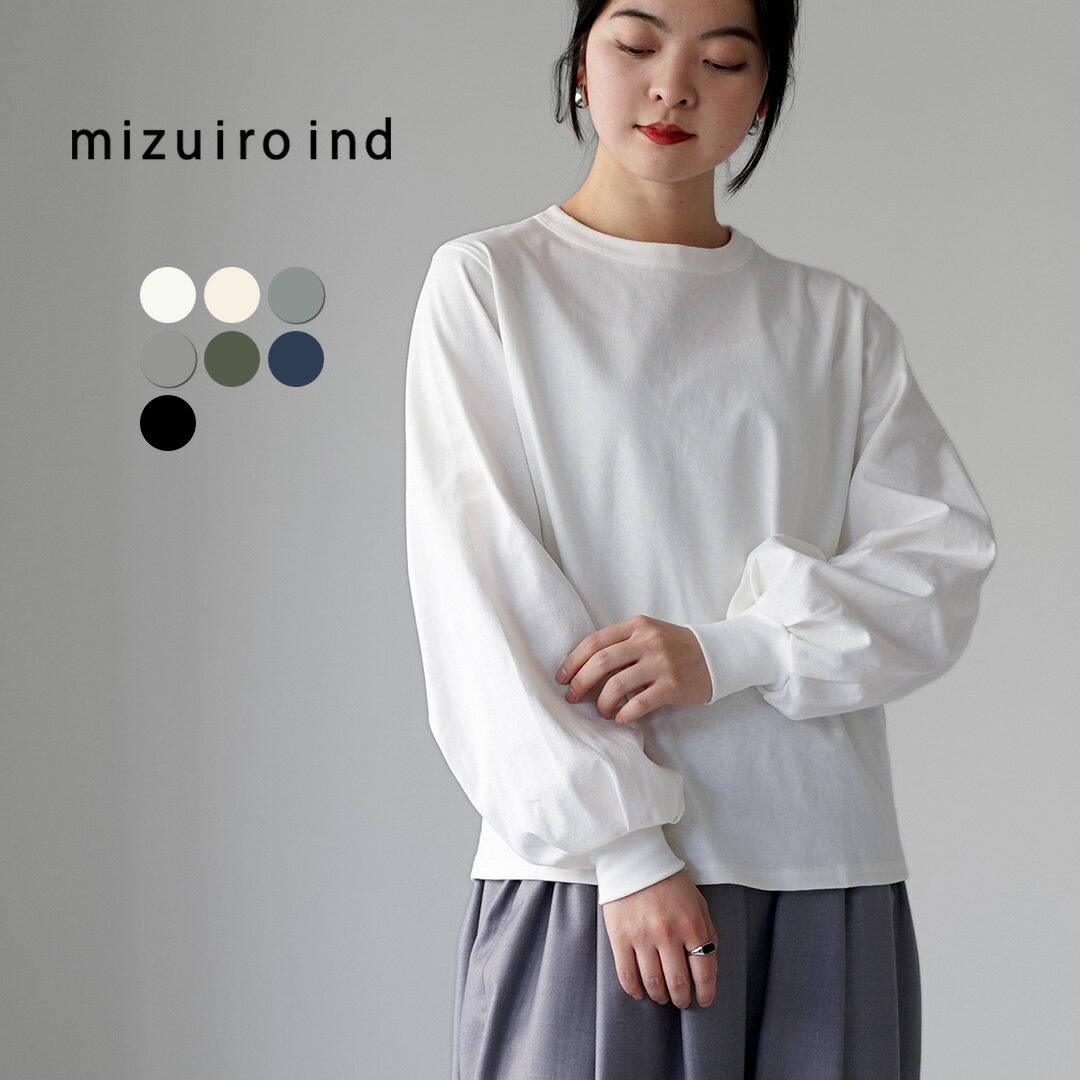mizuiro ind(ミズイロインド) パフスリーブ ロングTEE / Tシャツ ロンT レディース 長袖 カットソー クルーネック 綿100 日本製