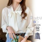 ブラウス レディース シャツ 長袖 シフォン パフスリーブ 無地 リボン ボウタイ ゆったり オフィス カジュアル 通勤 きれいめ おしゃれ 春秋新作