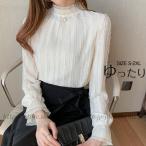 ブラウス レディース シャツ 長袖 レース パフスリーブ インナー ハイネック フリル 無地 切り替え オフィス 着痩せ 大人 通勤 OL 春秋