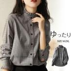 ブラウス レディース シャツ 長袖 チェック柄 綿 立ち襟 フリル オフィス ゆったり カジュアル 細身 韓国風 大人 上品 通勤 OL 高級感 春秋