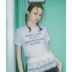 tシャツ ラインストーンチュールレイヤードTシャツ レディース