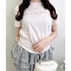 tシャツ ラインストーンチュールレイヤードTシャツ レディース