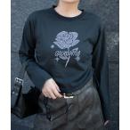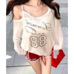 tシャツ スタッズ&ラインストーンロゴオフショル長袖トップス レディース