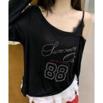 tシャツ ラインストーンロゴワンショルダーロンT レディース