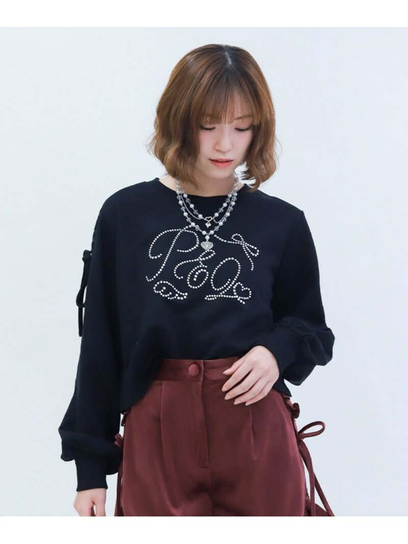 【SALE/40%OFF】PAGEBOY ラインストーンシアーロングスリーブ ページボーイ トップス カットソー・Tシャツ ホワイト ピンク ブラック